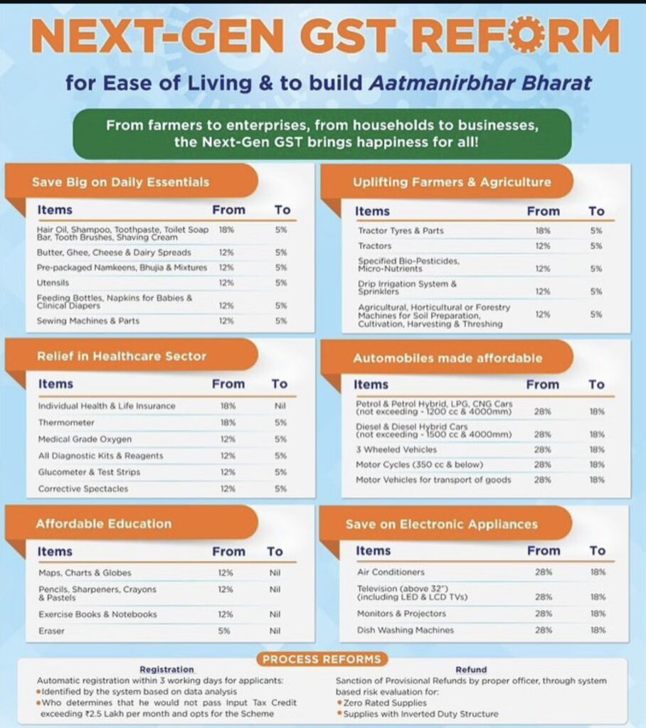 GST 2.0 में सरकार ने इन 6 क्षेत्रों में भारी छूट दिया है। यह है पूरी लिस्ट